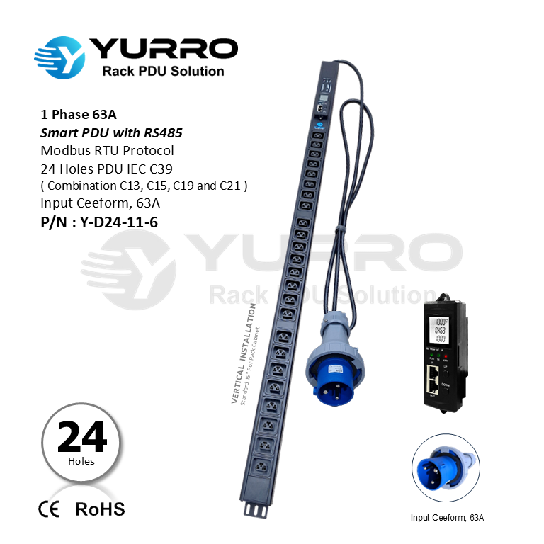/ 1 Phase 63A, 24 Holes IEC C39 SIPDU with RS-485
