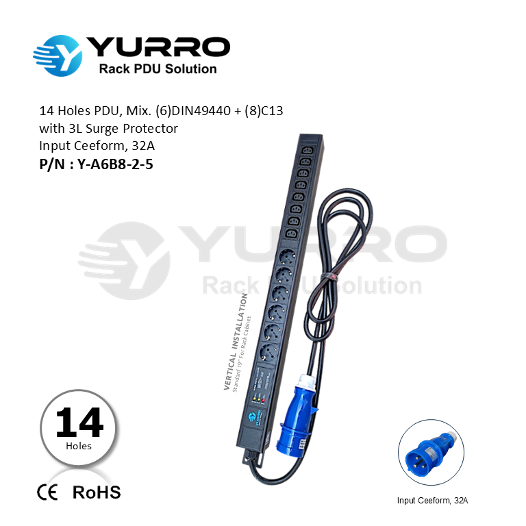 • Output : 14 Sockets (6)DIN49440 + (8)C13