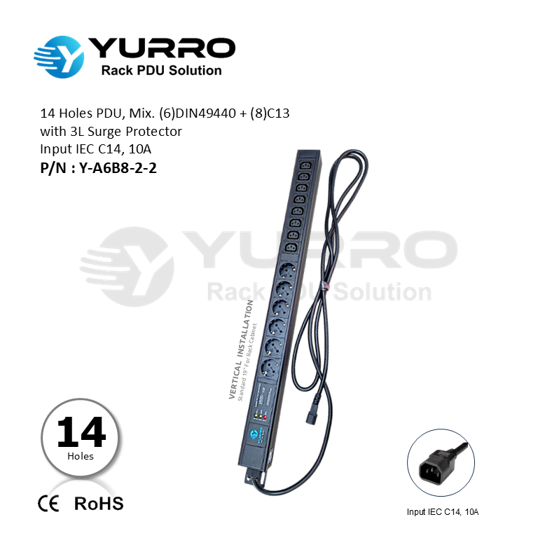 • Output : 14 Sockets (6)DIN49440 + (8)C13