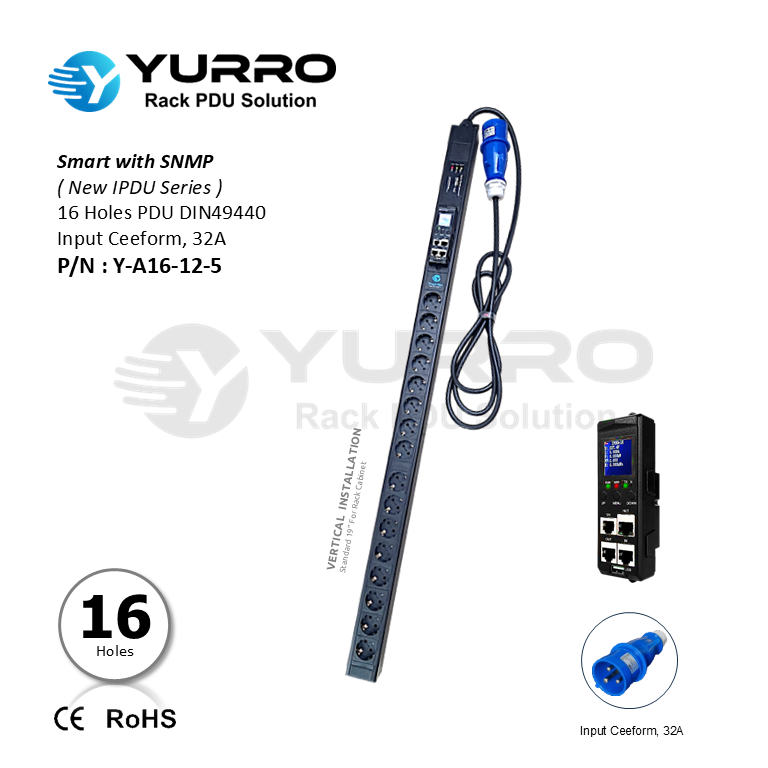1 Phase 32A, 16 Holes IEC C13 Intelligent PDU with SNMP