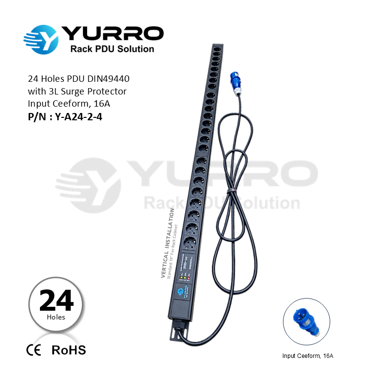 24 Holes PDU Germany with 3L Surge Protector, Input Ceeform 16A