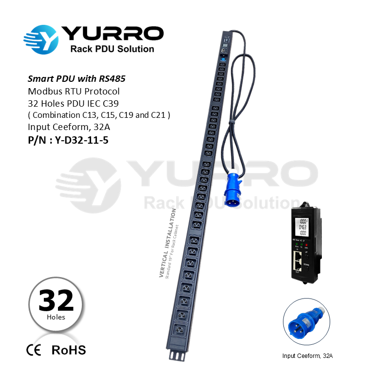 32 Holes IEC C39 SIPDU with RS-485 Input Ceeform 32A