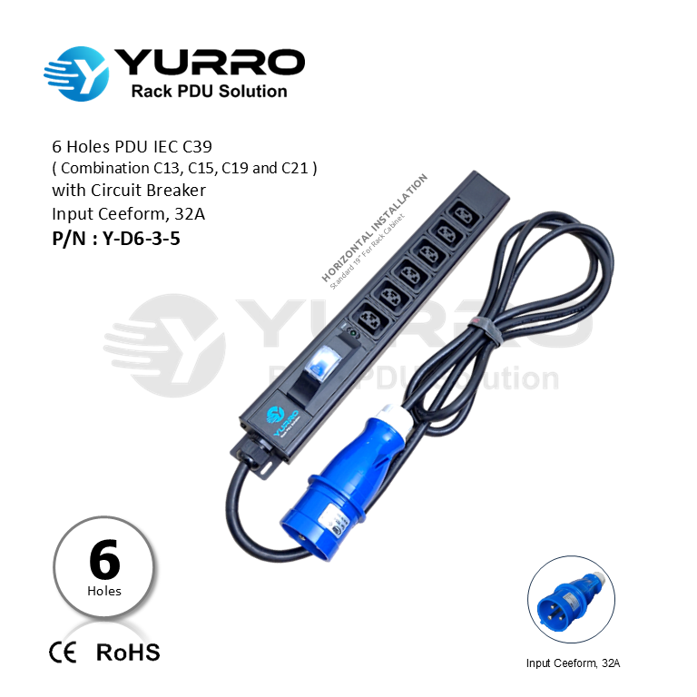 6 Holes PDU IEC C39 with Circuit Breaker Input Ceeform 32A